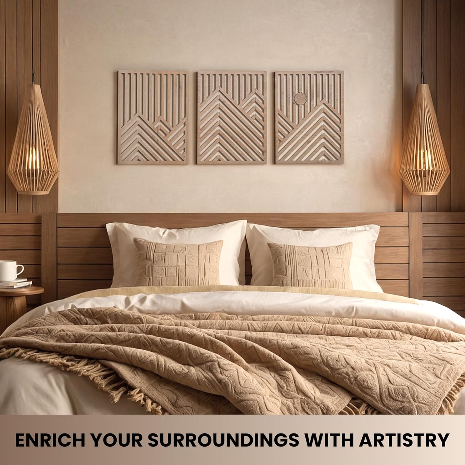 منحوتات حائط خشبية عصرية - مجموعة من 3 قطع