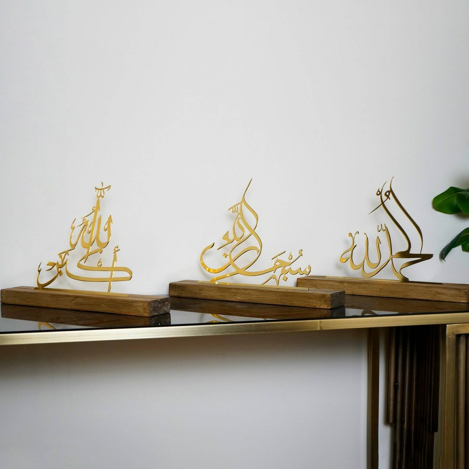 Description : Sublimez votre intérieur avec ce magnifique ensemble de 3 pièces en bois finement sculptées. Affichant les calligraphies sacrées "Subhanallah, Alhamdulillah, Allahu Akbar", ce décor apporte une touche de spiritualité et de modernité à votre espace.